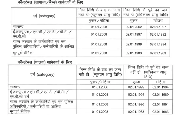 राजस्थान पुलिस कांस्टेबल भर्ती के लिए अभ्यर्थी की न्यूनतम आयु सीमा 18 वर्ष और अधिकतम आयु सीमा 23 वर्ष तक रखा गया है, इसके अलावाएससी /एसटी अभ्यर्थियों को 5 वर्ष और ओबीसी वर्ग को 3 वर्ष की आयुसीमा में छूट दी जाएगी।