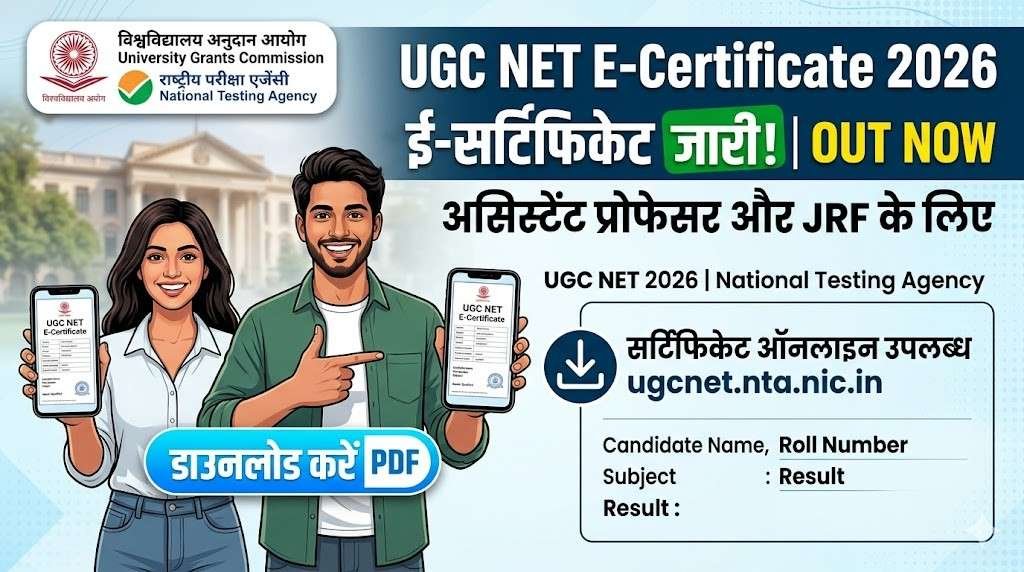 UGC NET E-Certificate Download 2026: नेशनल टेस्टिंग एजेंसी (NTA) ने यूजीसी नेट परीक्षा 2026 के सफल उम्मीदवारों के लिए एक बड़ी खुशखबरी दी है। हाल ही में परीक्षा पास करने वाले अभ्यर्थियों के E-Certificates अब आधिकारिक वेबसाइट पर उपलब्ध करा दिए गए हैं।